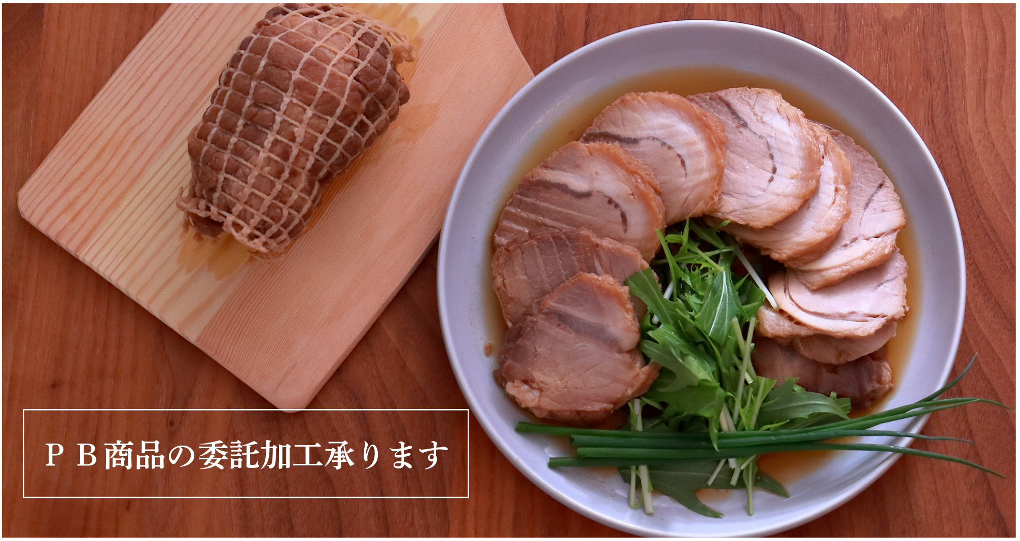 ・豚肉製品(煮豚、叉焼、角煮、焼成済み加工品、ハンバーグ、味付け肉、精肉スライス等)の製造が得意です。